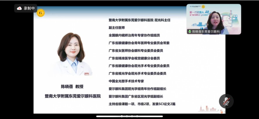 As a key initiator of this online symposium, Director Chen Xiaobei of the Refractive Surgery Department at Dongguan Aier Eye Hospital stated in her opening remarks that since the launch of robotic SMILE pro procedures, its intelligent, precise, safe, and efficient technical advantages have consistently earned positive recognition from both medical professionals and patients in clinical applications. To deepen technical understanding and build regional consensus, this conference brought together six core hospitals in the Greater Bay Area that were among the first to introduce the VISUMAX 800 device and implement SMILE pro technology. It also featured special presentations by Professor Yao Peijun and Dr. Zhao Yu from the Eye, Ear, Nose and Throat Hospital affiliated with Fudan University, sharing their pioneering experiences. By connecting with leading institutions that were among the first in China to adopt this technology, participants engaged in in-depth discussions on surgical protocols, clinical pathways, and long-term efficacy. Together, they explored feasible approaches for optimizing and promoting the technology, aiming to drive the steady advancement of SMILE pro technology in the Greater Bay Area toward higher quality and greater sustainability. This initiative seeks to extend the benefits of this advanced technology to a broader population of myopic patients.
