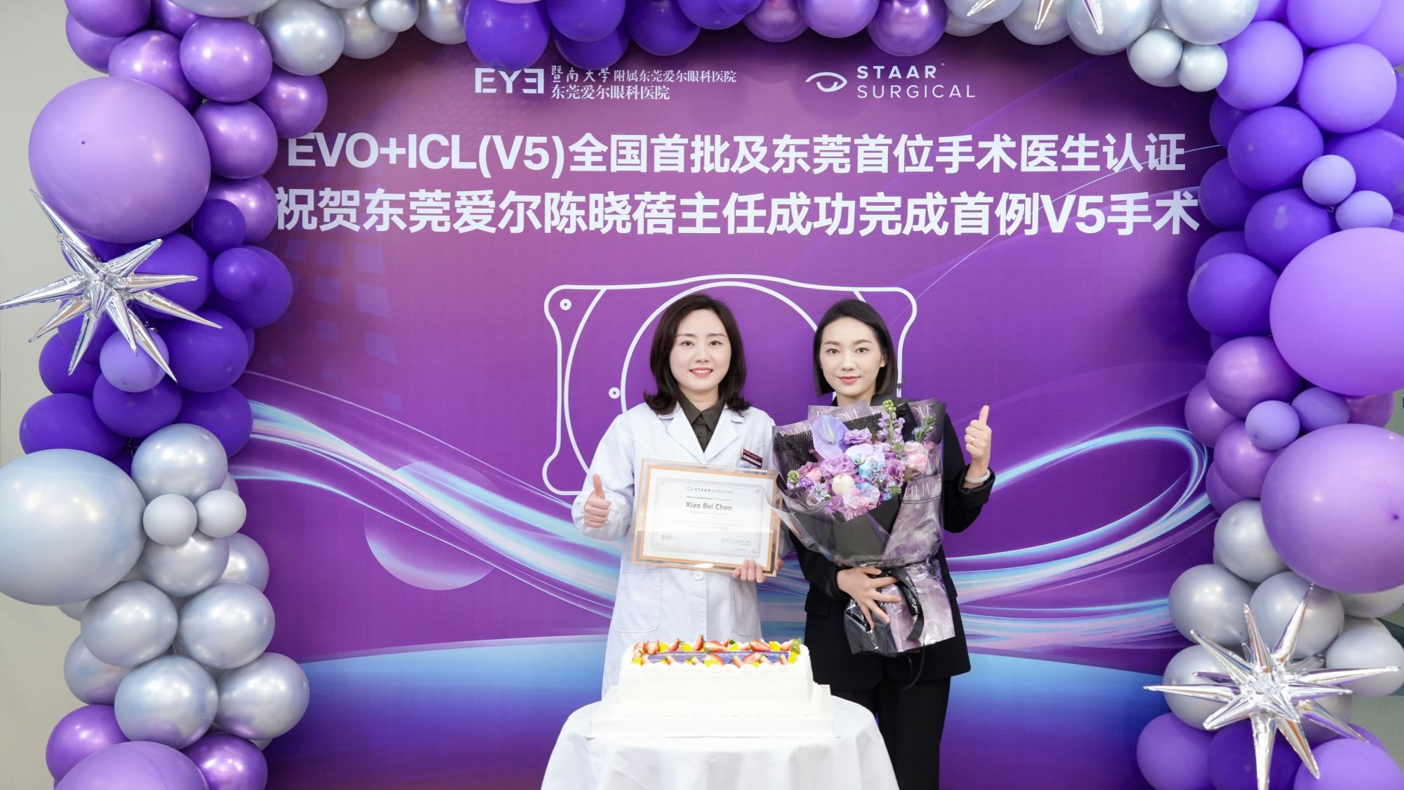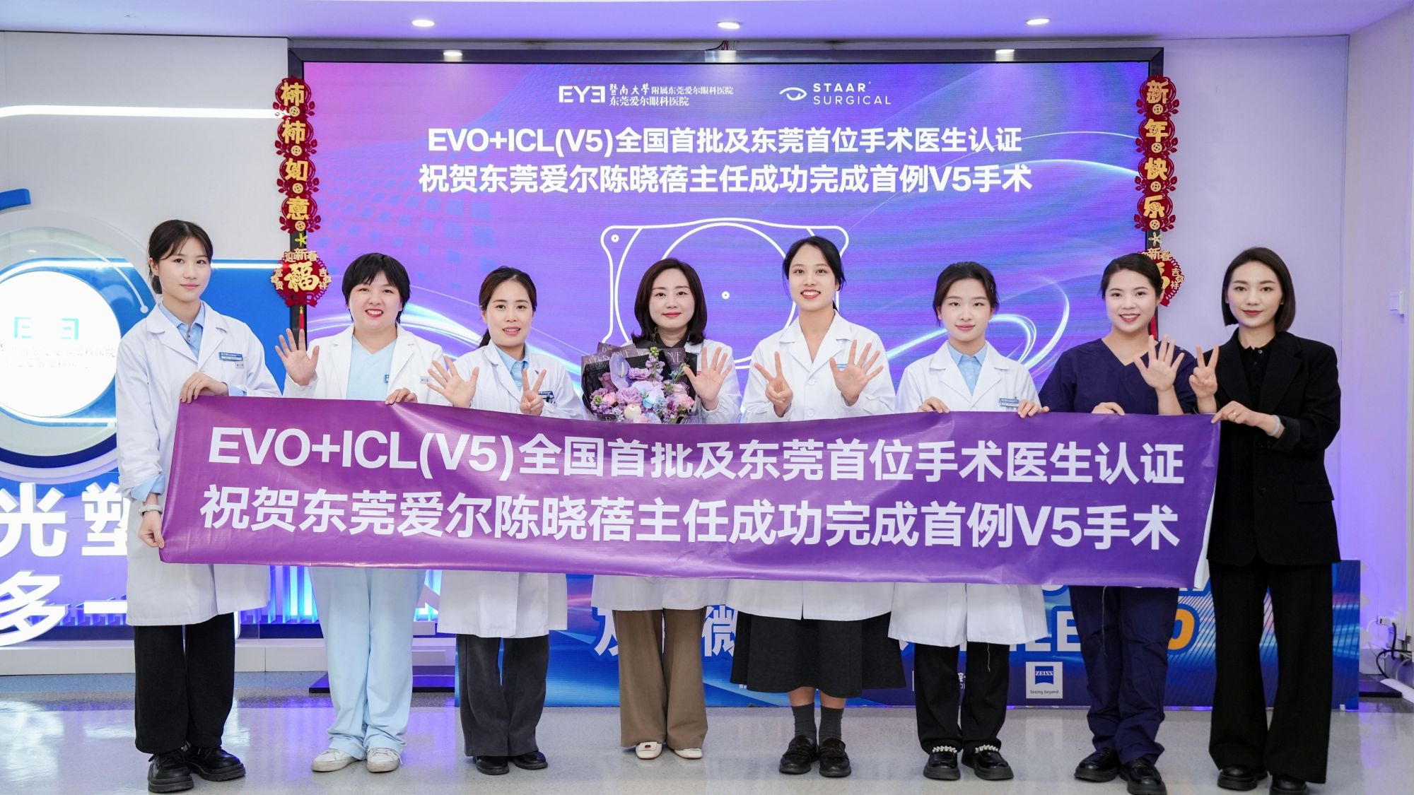 On the morning of January 19, Chen Xiaobei, Director of the Refractive Surgery Department at Dongguan Aier Eye Hospital, successfully completed the newly upgraded EVO+ICL (V5) implant surgery. She was awarded the EVO+ICL (V5) Surgical Certification Expert Certificate by STAAR Surgical Company in the United States, becoming one of the first refractive surgeons nationwide and the first in Dongguan to receive this international certification.