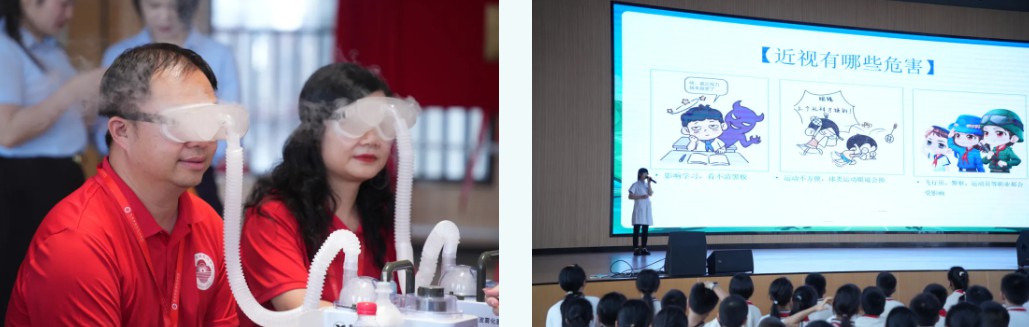 紧接着,医院精心组织了教师关爱活动,为辛勤耕耘的老师们提供专业的眼健康服务,帮助他们缓解教学工作带来的用眼疲劳,守护他们的视力健康。此外,熊帆医生还为学生们带来了一场精彩的科学防控近视的讲座,向孩子们传递爱眼护眼知识。