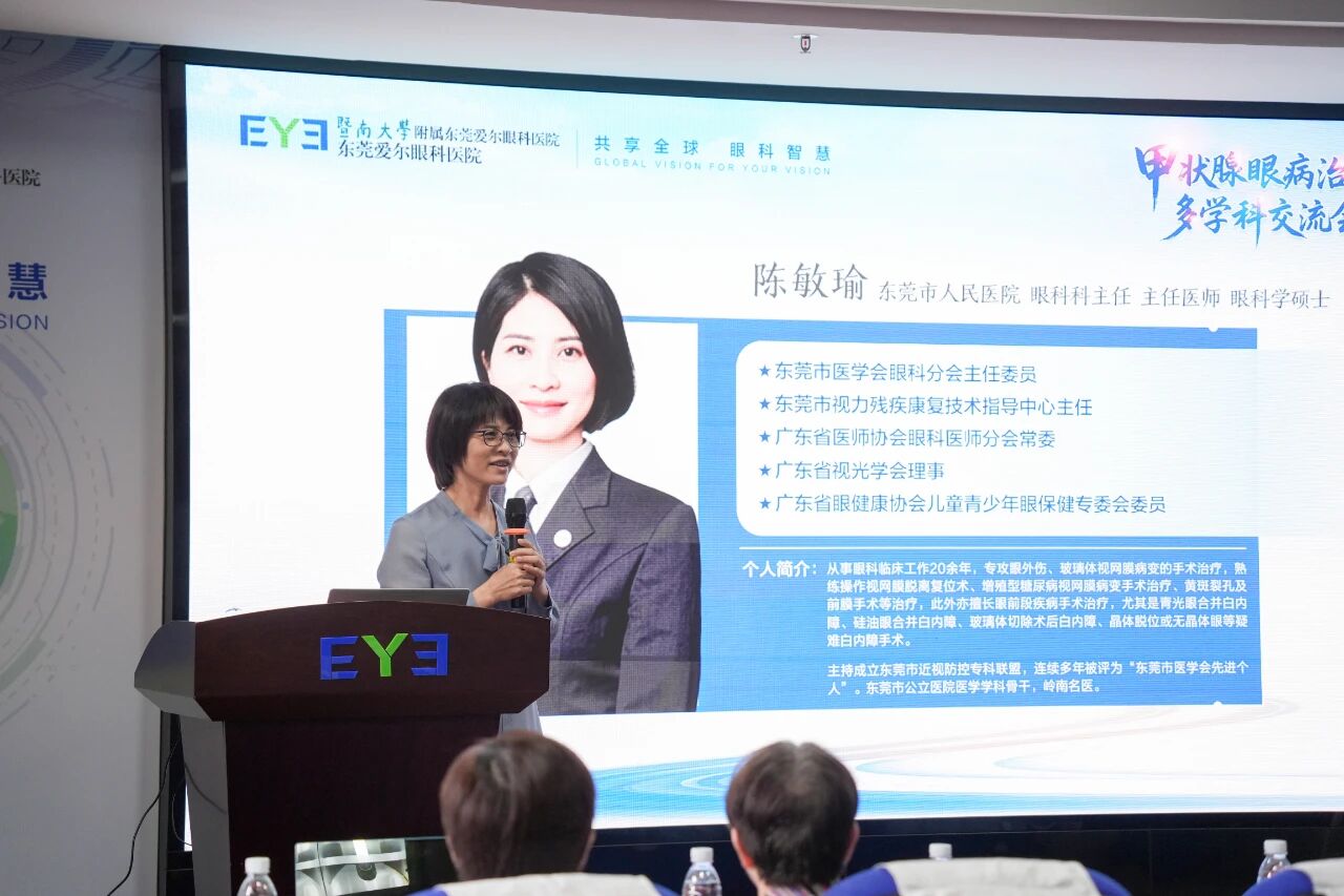 本次会议汇聚了来自眼科、内分泌科等多学科的权威专家,包括东莞市医学会眼科分会主任委员陈敏瑜教授、深圳市眼科医院刘桂琴教授、爱尔眼科重庆特区副总院长袁洪峰教授、东莞爱尔眼科院长刘斐院长、东莞爱尔眼科角膜眼表科主任叶健章主任、东莞市人民医院内分泌科主任陈伟坤主任、广东医科大学附属东莞第一医院周丹主任、东莞市第八人民医院林靖淇主任、东莞市东部中心医院金尚丽主任等。他们的深度参与,充分体现了当前甲状腺眼病诊疗领域对跨学科协作的迫切需求与高度共识。