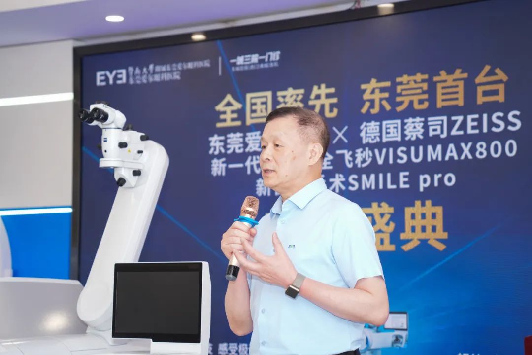 蔡司公司代表王木生先生对新一代机器人全飞秒VISUMAX800的启用表示祝贺。他介绍,该设备以其高颜值、高设计、极速和双导航等特点,为患者营造了良好的手术环境,同时解决了医生在手术中矫正中心和散光方面的难题。他相信,在陈晓蓓主任的带领下,东莞爱尔眼科医院将为更多近视患者带来福音。