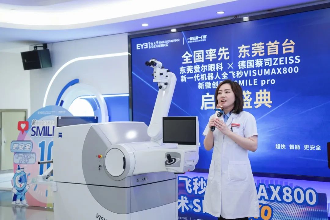 当天,众多行业专家齐聚东莞爱尔眼科医院,共同见证新一代机器人全飞秒VISUMAX800的启用。爱尔眼科集团屈光手术学组学科带头人、广东省区总院长王铮教授,爱尔眼科东莞区域总院长刘斐院长,东莞爱尔眼科医院CEO程雪女士、屈光科陈晓蓓主任,以及蔡司公司大湾区销售经理王木生先生等出席活动。