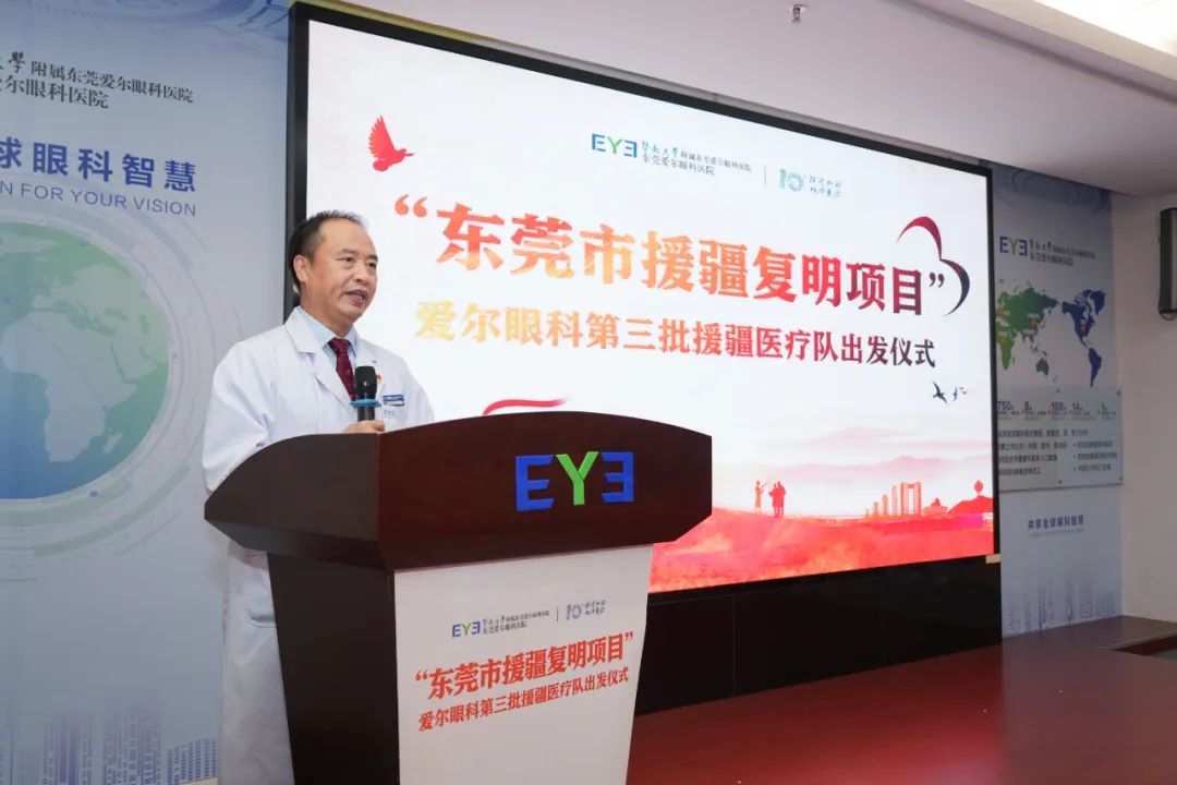 医疗援疆,承载着东莞市医疗系统的深厚情谊与责任担当,肩负着为对口支援单位人民提供高质量医疗服务的重要任务。暨南大学附属东莞爱尔眼科医院深入学习贯彻党的二十大精神、认真落实省委省政府关于新疆工作和对口支援工作的重要指示,在东莞市卫生健康局和东莞市残联大力支持下,东莞爱尔眼科医院牵头实施“东莞市援疆复明项目”,发挥眼科专业所能,扎实推动医疗援疆工作取得新进展新成效。