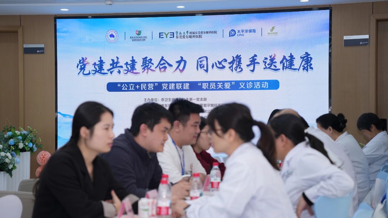 为深入贯彻党的二十届四中全会精神,落实省、市关于推进医疗护理志愿服务工作的部署要求,深化“公立+民营”党建联建模式,加强基层党组织建设与资源优势互补,2025年12月22日下午,在东莞市卫生健康局机关第一党支部的统筹协调下,市东部中心医院党委、东莞爱尔眼科医院党支部、中国太平洋人寿保险股份有限公司东莞中心支公司党支部、东莞市卫生健康继续教育中心党支部、西妃美容医院党支部等多家单位,开展了一场别开生面的党建联建交流会暨 “职员关爱” 义诊活动。