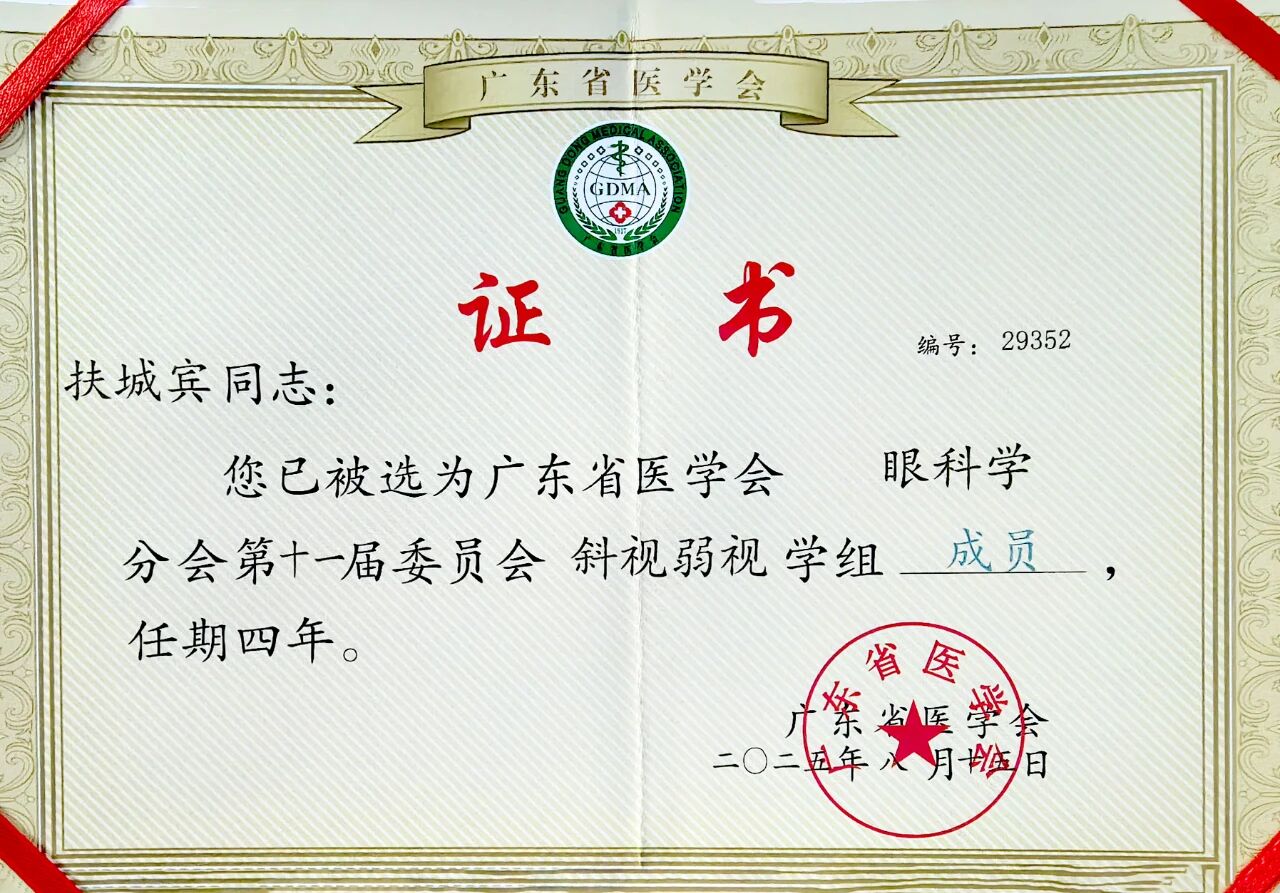 广东省医学会(前身为1917年成立的“中华医学会广东分会”)作为省内历史悠久、极具学术权威性的医学技术团体,其下设学组的成员遴选向来以专业水准、学术贡献为核心标准。此次斜视弱视学组的成立,标志着广东省眼科领域在亚专科精细化发展上迈出关键一步,而扶城宾主任的入选,正是学界对其深耕领域二十余年成果的肯定。