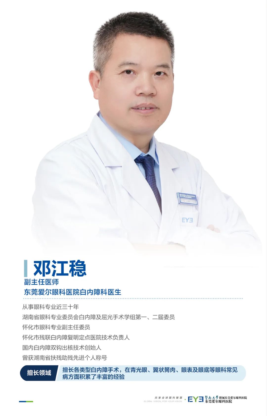 多年来,邓江稳主任通过举办学习班等方式,将“双钩出核方式” 技术在全国范围内推广,使基层医生掌握这项技术,显著降低了患者的并发症。目前,东莞爱尔已将该技术纳入常规手术技术体系,并在眼科联盟单位中无偿传授,让基层白内障患者无需辗转求医,即可获得高安全性手术的治疗。