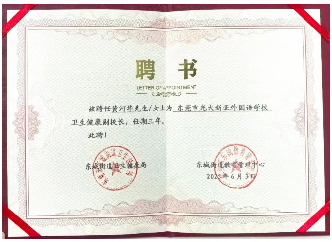 近日,东莞爱尔眼科医院的近视防控队伍走进光大新亚外国语学校,开展了一场别开生面的校园健康活动,通过主题讲座、实地走访等一系列形式,为师生带来了专业的眼健康知识科普。活动中,我院黄河华医生正式受聘为该校“卫生健康副校长”。