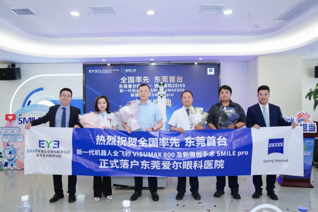 当天,众多行业专家齐聚东莞爱尔眼科医院,共同见证新一代机器人全飞秒VISUMAX800的启用。爱尔眼科集团屈光手术学组学科带头人、广东省区总院长王铮教授,爱尔眼科东莞区域总院长刘斐院长,东莞爱尔眼科医院CEO程雪女士、屈光科陈晓蓓主任,以及蔡司公司大湾区销售经理王木生先生等出席活动。